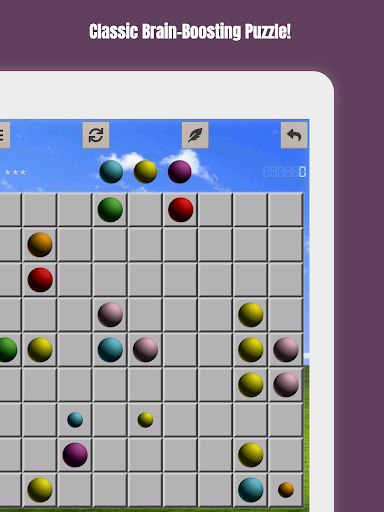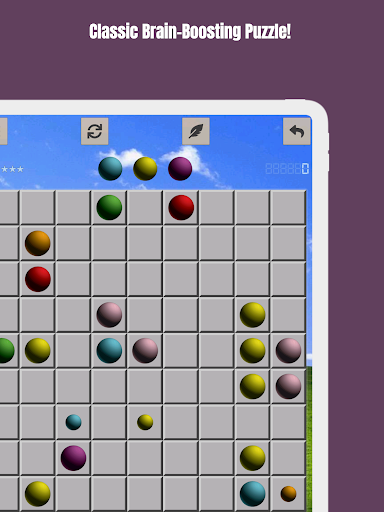 Position colorful orbs on a grid, striving to align five of the same hue. But here's the catch: each move not resulting in a line spawns three new balls. The challenge? Keep the board from filling up as you weave through this captivating puzzle maze.