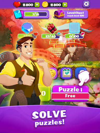 The game mechanics are designed in a unique connect-style, making it different from classic swap-to-match games. You'll love the adorable puzzle pieces of kittens, birds, piglets, and foxes greeting you at every turn. With a wide range of different puzzles available and multiple special modes, such as puzzles focused on the order of moves or arcade levels aiming on matching pets into a certain shape, you will never get bored. The game also offers amazing daily events and various artifacts to collect as you visit exotic countries with our characters.