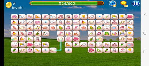 + You have to find two identical icon tiles that can be connected with up to 3 straight lines where there is no other tiles blocking on the connecting line path.