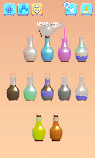 Try to sort it and pour colored water in the bottles until all colors are in the same water bottle. A relaxing and challenging water sort puzzle 3D game to train your brain