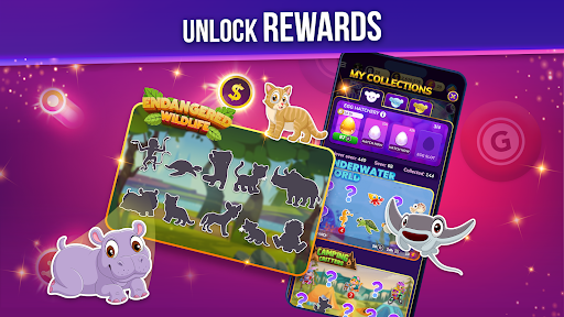 - Earn coins & power-ups playing slots mini-games & bingo games