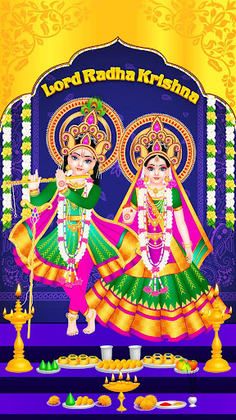 Enter into the world of devotion to Lord Radha Krishna with this enchanting dress-up game which allows you to offer prayers anytime. You can even download your custom-made Radha Krishna wallpaper for free at the end!