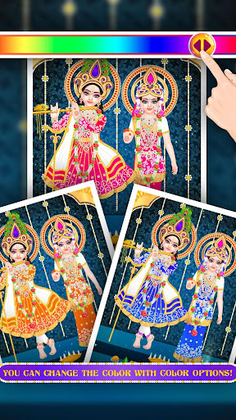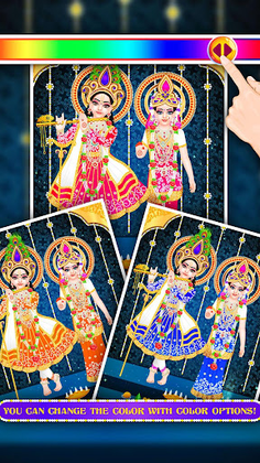 - Choose from a plethora of dress options for Radha Krishna, and even change the dress color with sliding options