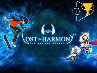 Introducing the award-winning game Lost in Harmony! This game was named "Most innovative Games" in 2016 and offers players two incredible stories to experience.
