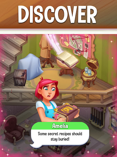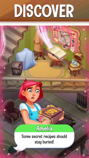 Uncover juicy secrets in every room as Amelia solves mysteries in her family cafe. In a story full of twists and turns, you’ll meet dramatic exes, nasty rivals, eccentric relatives, adorable pets and friendly customers. Endless drama, love and secrets - a merge mystery!