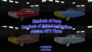 Build 1 of 7 cars from the ground up with hundreds of custom parts and paint jobs. Customize your car while listening to music on soundcloud or your own MP3 music.