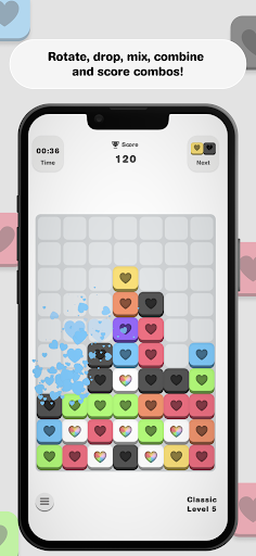 • Experience a novel and stimulating gameplay amalgamating Tetris mechanics with color-matching elements