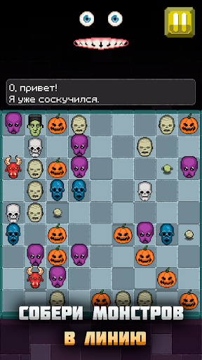 После каждого хода на поле случайным образом появляются три новых монстра. Ваша задача - расположить монстров одного типа в прямую линию в любом направлении, чтобы уничтожить их и получить победные очки. Монстра можно переместить только на свободную ячейку, и если ему не мешают пройти другие монстры.