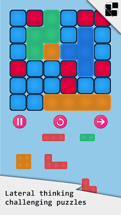 The aim of each of the 62,000+ puzzles is to complete the square using the nine coloured shapes!