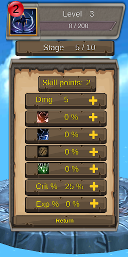 You play as a mage wielding four elements. You travel through a land dominated by monsters. During battle choose appropriate element in order to defeat monsters as efficient as possible. As the game progresses imporve Your mage using skill points.