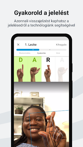 Az alkalmazás segítségével memorizálhatjuk a betűket, gyakorolhatjuk azok kivitelezését magunk is, mivel a telefon kameráján keresztül figyeli a felhasználó kezét, és visszajelzést ad számunkra. Fejleszthetjük továbbá felismerési képességeinket is, azaz egy jelelő által nekünk mutatott betűzés megértését. Az alkalmazásban egyre nehezedő kihívások mentén tesztelhetjük az elsajátított tudásunkat.