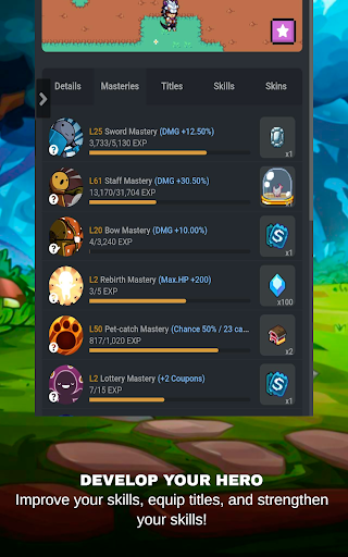 Collect materials to create more powerful gears, combine ingredients to create magic potions or wings. Use runes to create gems that will strengthen your equipment.