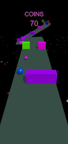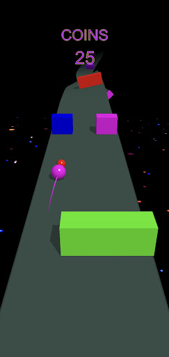 The aim of the game is to dodge obstacles with your colorful marble and collect coins.