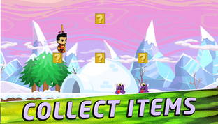 Collect coins and fruits to gain more power and health. Jump through levels and defeat monster bosses. Tap, run and jump - Enjoy playing retro games!