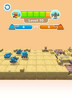 Battle Arena: Enter the battlefield and engage in intense tank battles. Use your merged tanks to strategically destroy enemy tanks and fortifications. The tank with the highest level wins the battle.