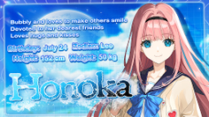 Meet Honoka, the Kind Soul, who entered this world just to see you again. Her heart is enormous, and she works hard to put a smile on everyone's face. When she noticed how quiet you were, Honoka fell in love with you at first sight, yet her shyness held her back from speaking to you. Can you help her gather the courage to express her feelings?