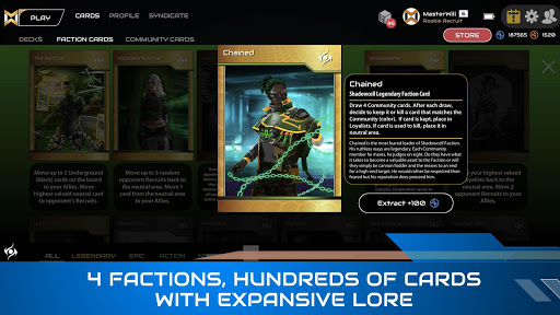 As the other three Factions made themselves visible to the world, there were others who wanted to take control in a more low key fashion. Shadowcell was spawned as an almost vigilante group who used deception as their modus operandi. They worked exclusively with the underground members of the community to trade in secrets. They played the spy game and used their stealth to rule the darkness. Shadowcell was the closest thing to an independent intelligence agency operating in the black.