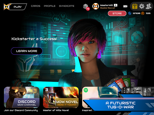 It will test your skills, instincts and mind. Set in a beautiful cyberpunk world opposing players choose which Faction best suits their play-style. MOW doesn’t rely solely on your Faction cards but also on your ability to manipulate the movements of the shared Community cards resulting in an epic “Tug of War”.