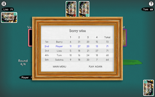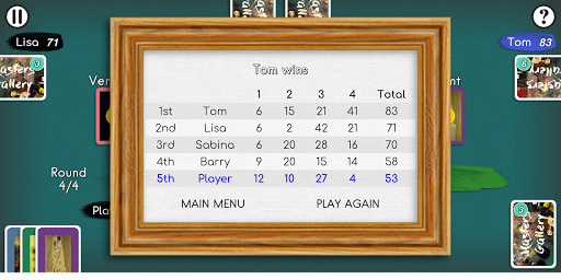 - Configure the colour of the cards from a selection, useful for colour blind players