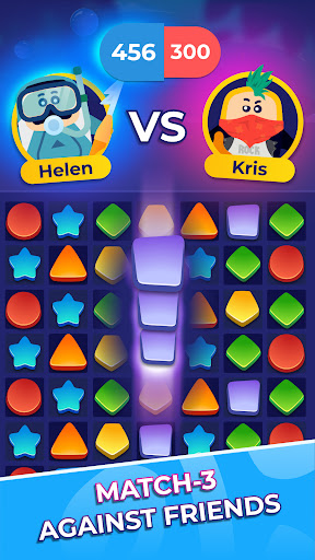 In the game, you and your opponent will solve Match 3 puzzles on the same board. Combine 3 or more fragments of the same color to create explosive combos!
