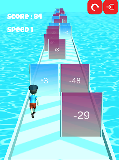 Math Runner is new Endless running game where you have to get in positive score to live, If you score goes down from 0 you will die.