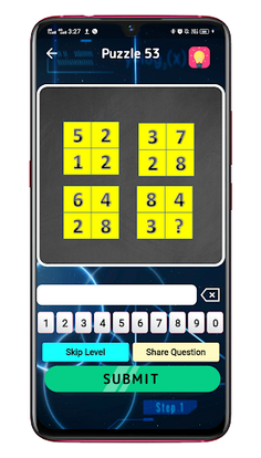 Math puzzles increases your logical thinking. Objective of the game is to find patterns hidden in the puzzle in order to arrive at the solution. This game helps in enhancing your