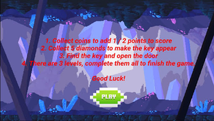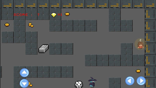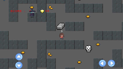 Touch the direction to move. Get the shield to protect yourself from ghosts for 1 minutes. Get all diamond on each level to make key appear to help you escape through the door. Get coins to get score. The player will have 3 life. When the player touch the ghost, she will lost 1 life.
