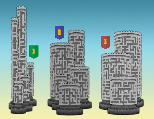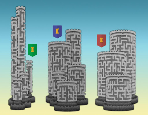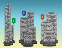 • mazes vary in difficulty and are represented by green, blue and red banners