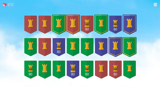• more challenging levels with high towers are marked with gold bezel