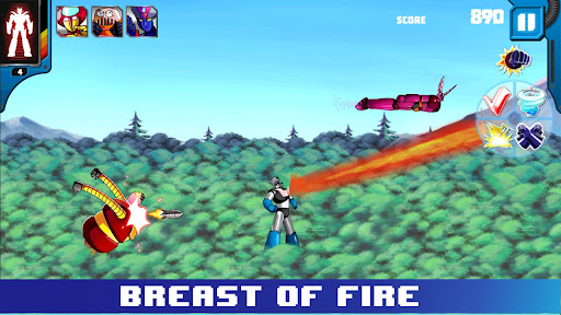 You have four (4) weapons at your disposal in the upper right, you just select the icon and the weapon is automatically activated, you have the rocket fists, the corrosive hurricane winds, the photon rays and the chest fire, additionally there is an icon which allows you to protect Mazinger for a few seconds.