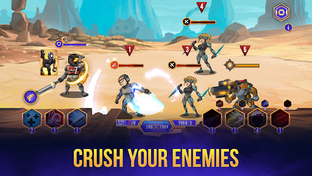*** Improve your character's stats by acquiring experience points by beating dystopian enemies through PvE turn-based strategy battles.