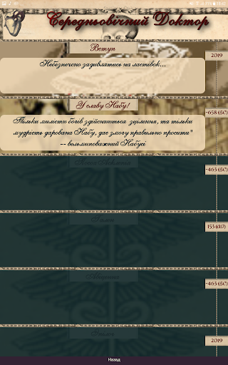 Medieval Doctor is the text adventure game enriched with a questions on a medical and human history subjects.