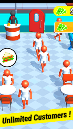 Cook and serve variety of food dishes to unlimited customers , earn money and become billionaire