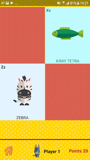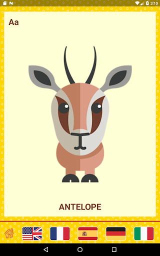 - Alphabets: you can see all the cards that contain the letters and their associated animals of all 5 alphabets;