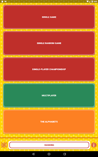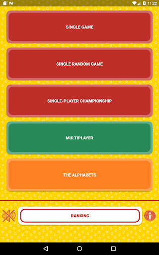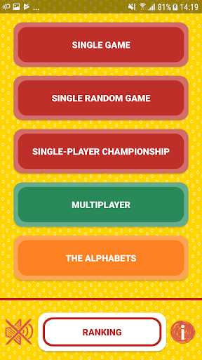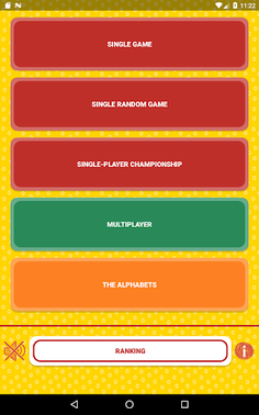 - Single-player championship: organized in levels, it starts with a minimum number of cards of the English alphabet and once completed it moves to other languages;