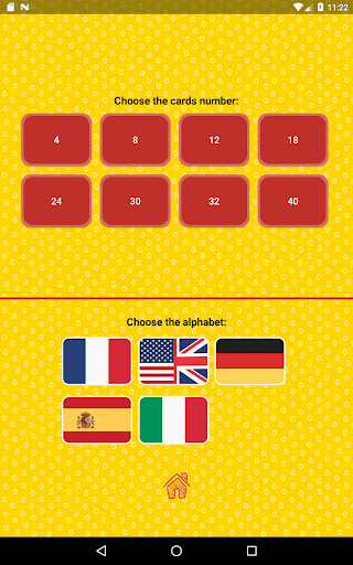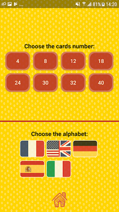 - Single random game: the application will choose for you the number of cards and the alphabet;