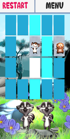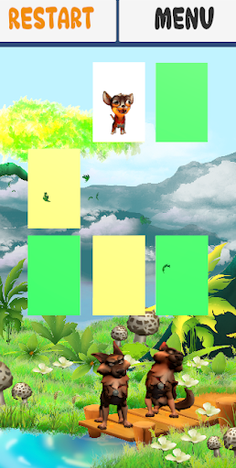 GAMEPLAY Find 2 identical animals by turning 2 tiles at a time and remember which animals are behind each tile.