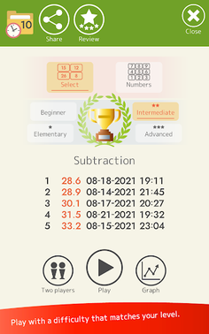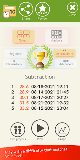 As you play, you'll develop increased proficiency in arithmetic, which is a valuable skill for daily life and academic success. Whether you're a student, professional or just someone who wants to keep their mind sharp, this app will help you improve your cognitive abilities.