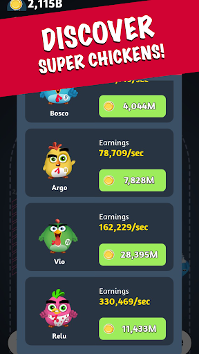 In this exciting idle game, you must charge your eco power jet to double your earnings while running towards your ultimate goal of becoming a QUINTILLIONAIRE! Unlock and upgrade a wide range of CRAZY chickens, unlocking never-before-seen breeds in the process.