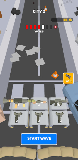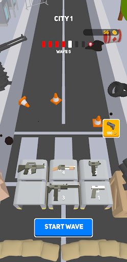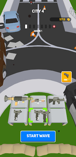 Purchase a weapon and upgrade it by merging into another weapon of the same level. You start with a pistol and can end up with the most powerful weapon - RPG. There are whole 7 levels of weapon upgrades! But be careful with upgrading the weapon as some weapons deal small damage over the area or can hit only one zombie with a lot of damage!