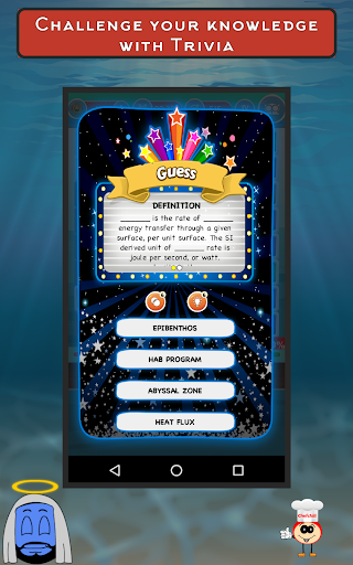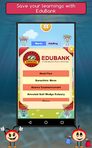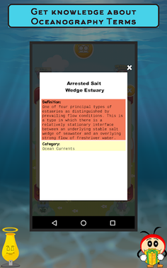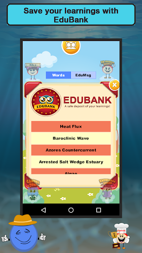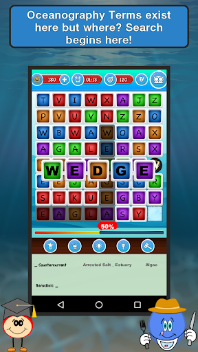 The Great Marine Life! With detailed facts and images, this brilliant Oceanography learning game helps you to identify thousands of marine species (plants, animals and other organisms) that dwell in the cavernous parts of the ocean. Play to gain in-depth information of aquatic species including shape, special features, phyla etc. Students and educators interested in Oceanography must download this game now. In the gaming section, you can search for the hidden Oceanography names in mesh. The list is given below. You must find all the words to move to the next level. With every pass you get to learn something new. Attempt Trivia to boost the score and learn more about Oceanography. Get through the hurdles, gain perks and gifts. Collect them in your kitty, Edubank, for future reference. Know everything about Oceanography like category etc.