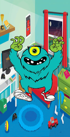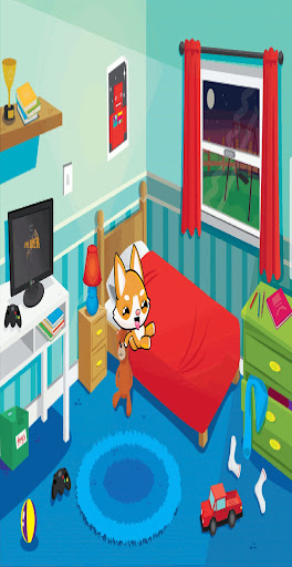 You are at home with your new pet. You can swipe left to view status such as hunger, thirst, health, sleep, your money, and other values. Upstairs is the kitchen, further up the game room, then the bedroom, and then the bathroom.