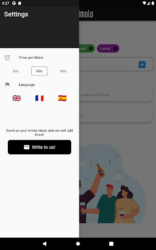 Download Mimolo now from the Play Store and get ready for memorable evenings filled with laughter, challenges, and shared drinks among friends. Put your mime skills to the test, distribute drinks, and create unique memories with Mimolo, the ultimate drinking game!