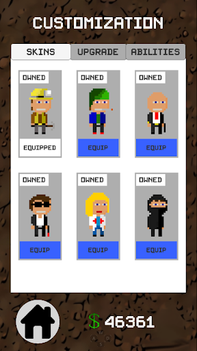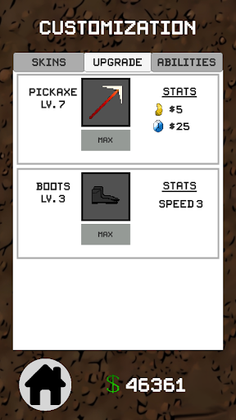 Venture deep into the flooded mine at breakneck speed! Grab every glittering gem and golden nugget you come across, for the more treasure you amass, the better your chances of purchasing skins, upgrades, and abilities. Each skin boasts impressive animations that will leave your character shining like a diamond. Upgrade your equipment to maximize your mining potential, increasing your depth and longevity. Enhance your pickaxe to extract even more riches and acquire boots to speed up your descent. Prepare to face various challenges and daunting obstacles that will require you to activate a number of active and passive abilities. Choose your abilities wisely, as you may only equip one at a time! Race against your rivals to clear the mine the quickest. Tilt your device forward to gain speed or invert the controls for added challenge – the choice is entirely yours, miner.
