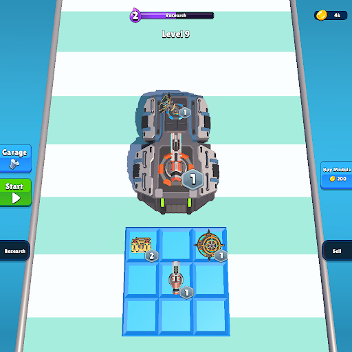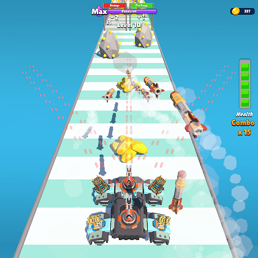 Merge laser turrets, missile launchers and other tank components to create the most powerful mining tank.