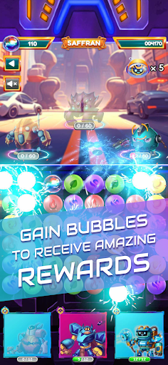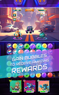 Dive into the BUBBLE BOTS’ story! Compete against players in a colorful puzzle royale of simple good and evil chaos. Choose from a diverse cast of powerful robots and engage in exhilarating battles to claim victory. Crush your foes with perfectly timed skills, unique abilities, and superior tactics. Are you ready to fight for what you believe in?