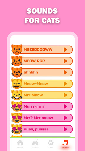 12 sounds for cats: the sound of meowing, angry meowing, purring, puss puss puss, shaking food and many others.