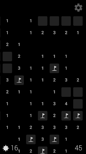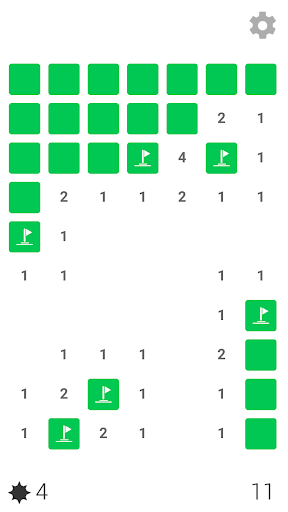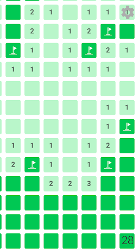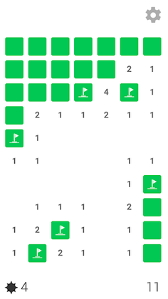 Each square contains a number showing how many mines are around it. You lose the game when you clear a mine. Hold to flag the squares where you think the mines are and tap to clear the ones where they are not. You can clear everything that isn't flagged around a previously cleared square by tapping it. Once you've cleared everything but the mines you win!