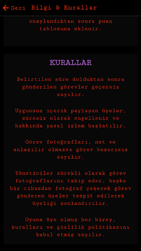 Her gün, saatlik ve günlük görevler gelir. Görevler verilen süre içerisinde tamamlandığında, yöneticiler tarafından onaylandıktan sonra puan tablosuna eklenir.