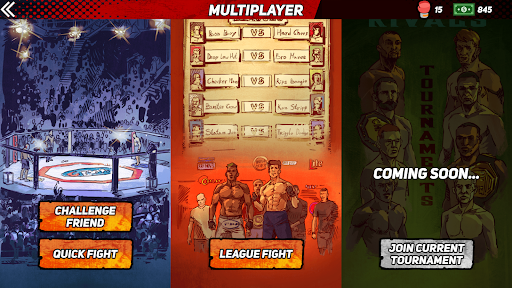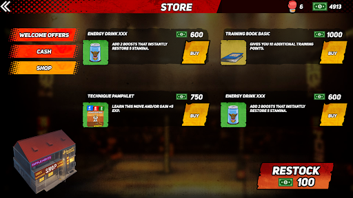 Start with a new fighter; Earn money fighting in different leagues; Earn training points for improving skills and techniques; Unlock new techniques; Build up your strategy before each fight using an easy to understand card deck presentation;